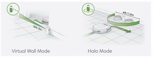 Почиствайте само там, където искате да почистите Функцията Virtual Wall (Виртуална стена) иi Halo ограничава достъпа на робота до стаи, в които не искате да почиства, и го държи далеч от нещата, които искате да защитите. Виртуалната стена излъчва инфрачервен лъч на дължина от около 3 м, която роботът няма да мине. Функцията Halo създава защитна зона като кръгова дъга около виртуалната стена, с диаметър 50 cm, така че да можете точно да определите областта, която ще се почиства. |